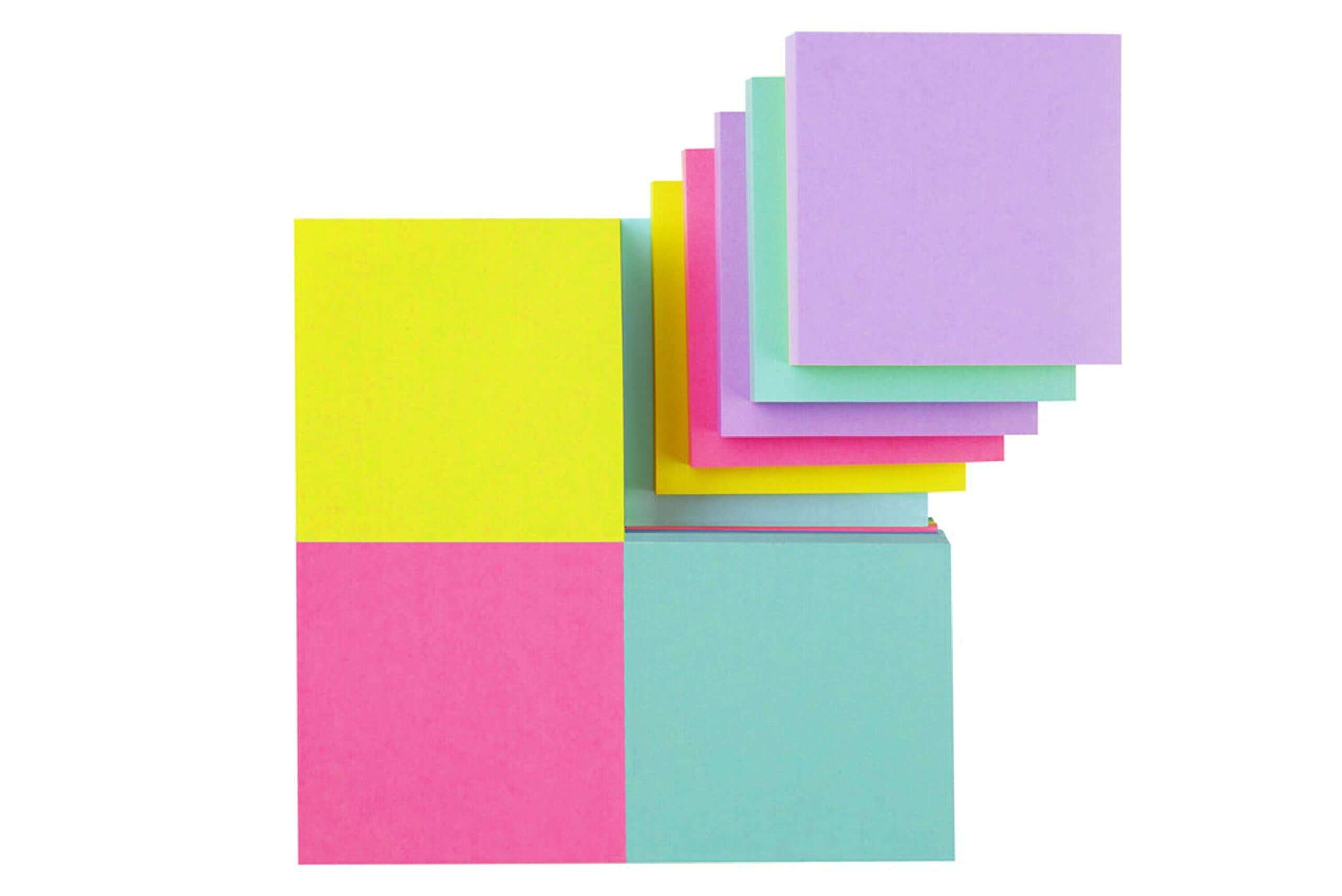 • Aqua Splash, Acid Lime, Tropical Pink and Iris Infusion Post-it Super Sticky Notes, 3 in. x 3 in