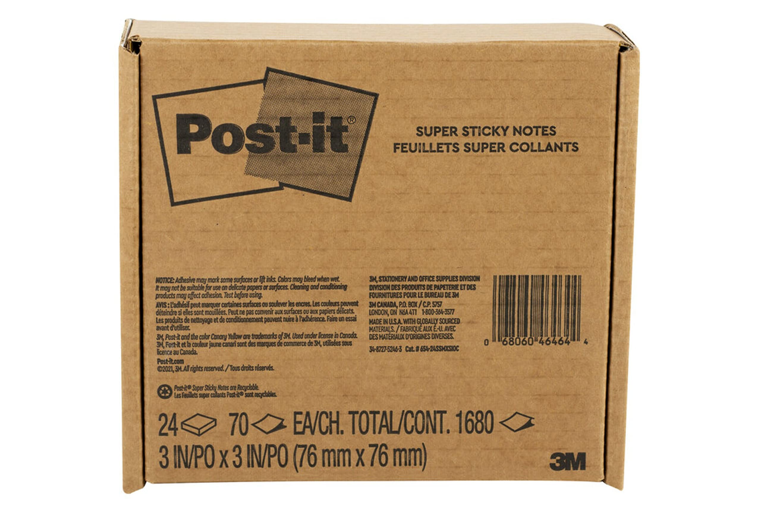 Home Office Products Post-it Super Sticky Notes, 3×3 in, 24 Pads/Pack, 70 Sheets/Pad