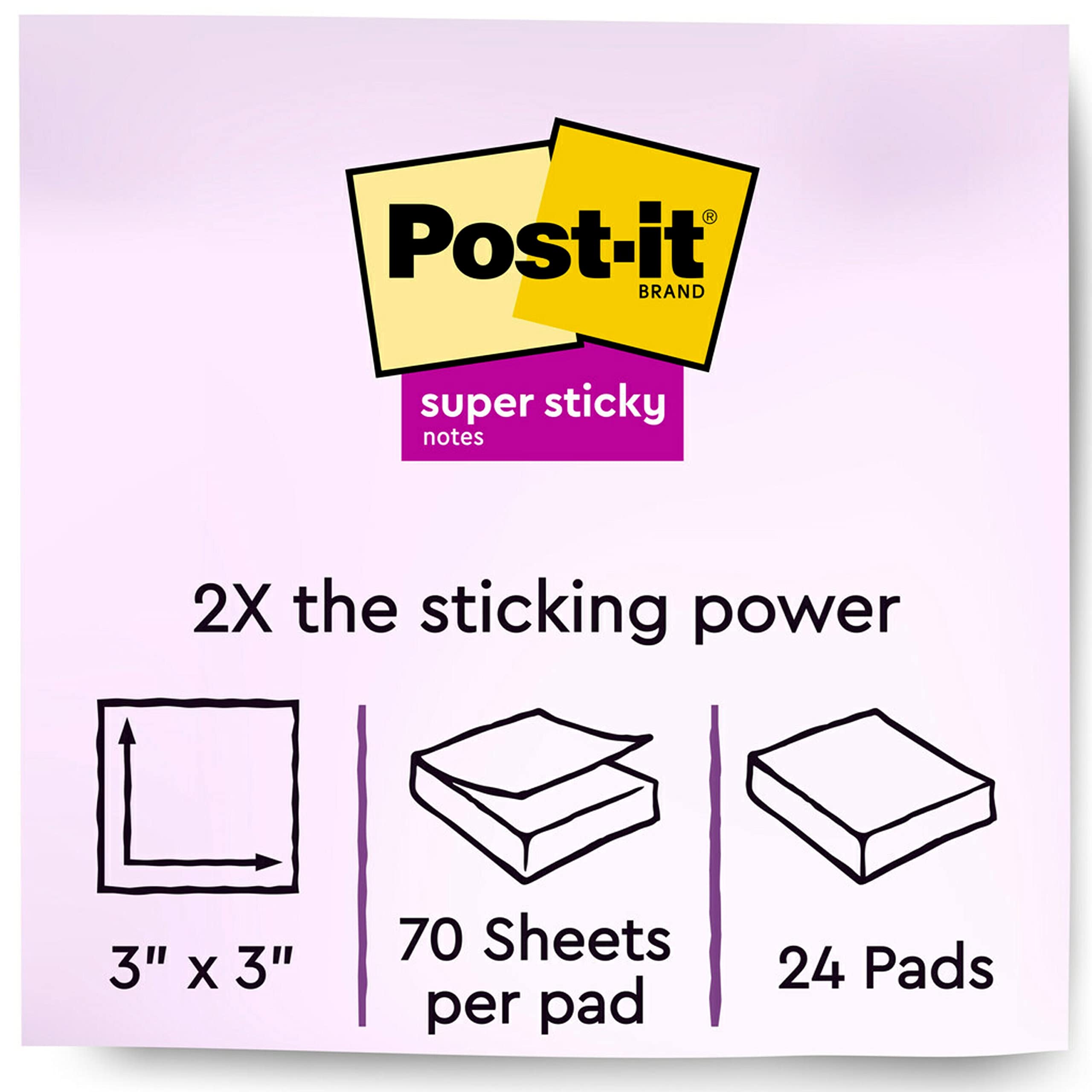 Post-it Super Sticky Notes, 3×3 in, 24 Pads/Pack, 70 Sheets/Pad